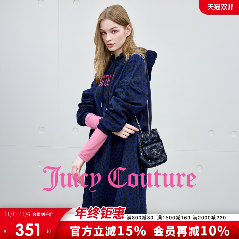 Juicy Couture橘滋连衣裙女2025年秋冬新款豹纹休闲连帽卫衣裙子
