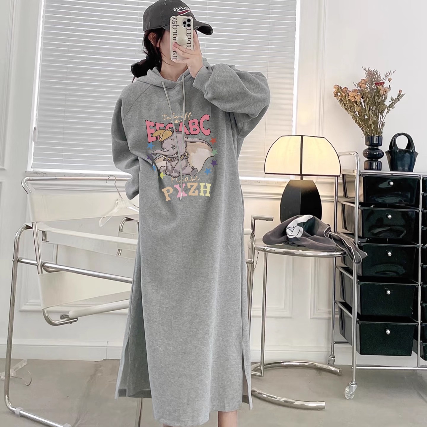 傲丝度连帽长袖卫衣裙子女2025冬装新款收腰显瘦百搭中长款连衣裙