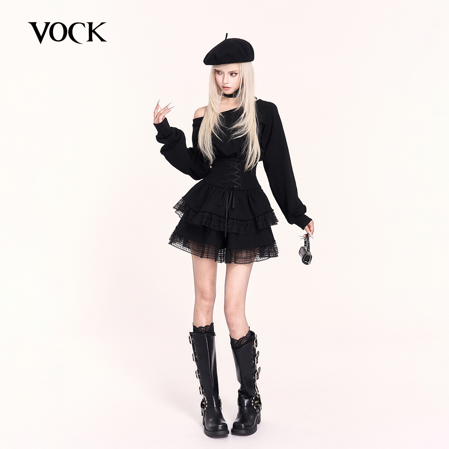 VOCK 反派甜心 暗黑日系甜酷辣妹蕾丝蓬蓬裙收腰显瘦加绒卫衣裙子