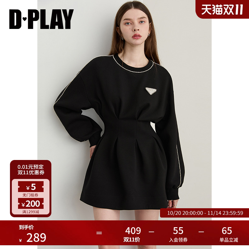 DPLAY【轻奢闪钻系列】2025年秋季新款黑色连衣裙女休闲卫衣裙子