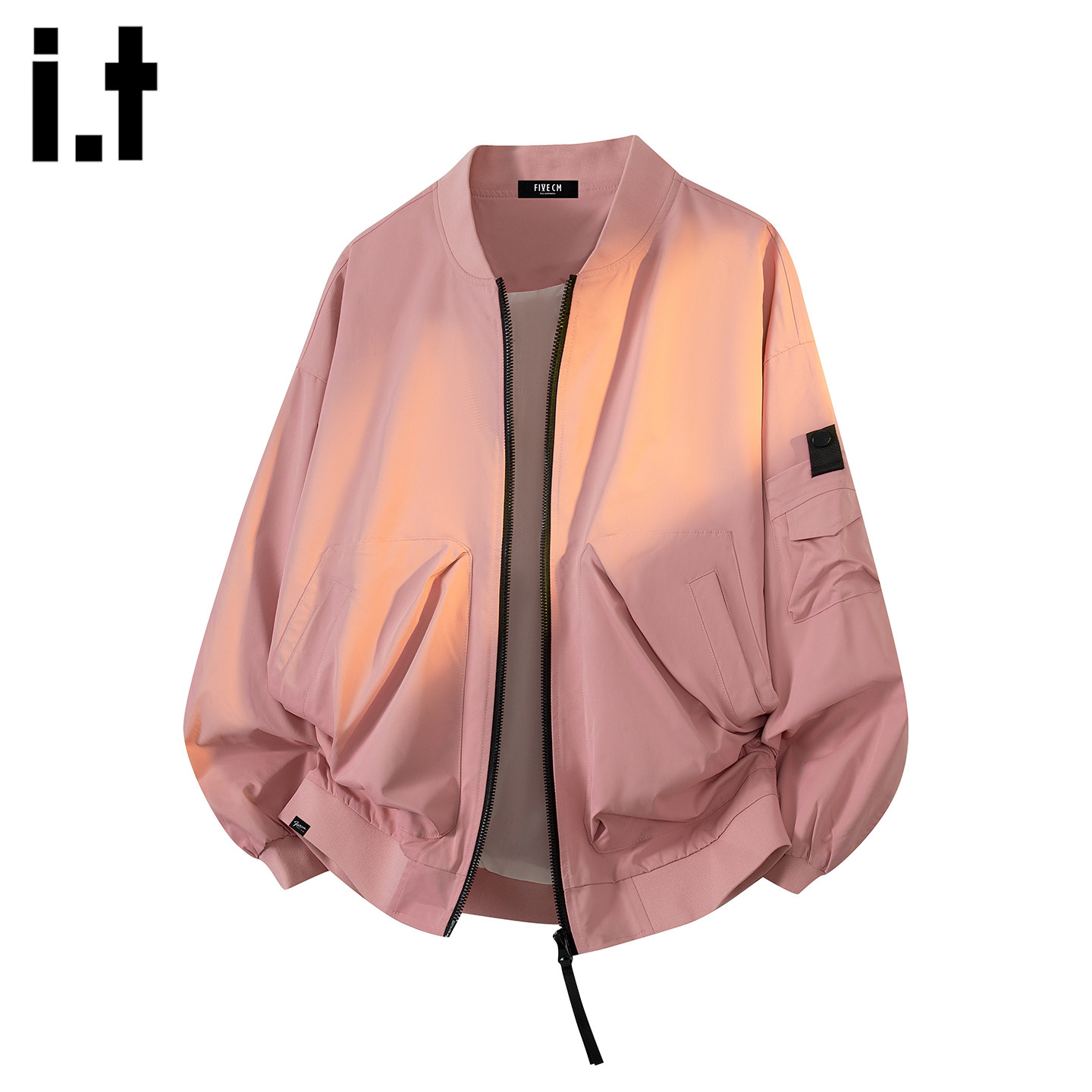 it:fivecm粉色棒球领外套男女春季潮牌宽松休闲工装飞行员夹克潮