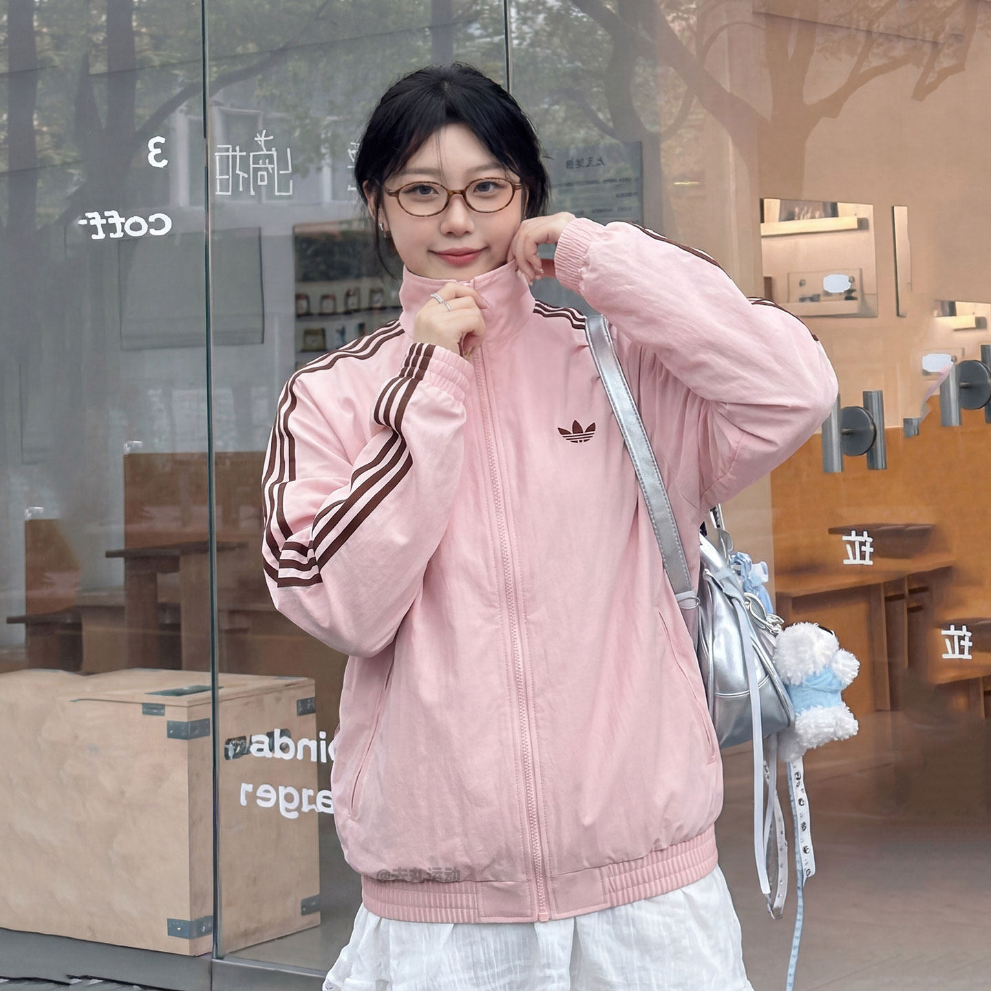 阿迪达斯三叶草男装女装梭织夹克粉色外套26新款健身运动服KQ9497
