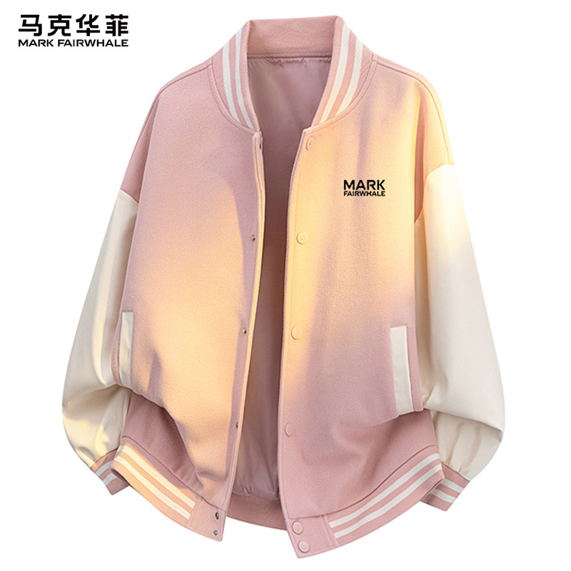 马克华菲粉色棒球服外套男士2026新款撞色拼接上衣男款夹克衣服