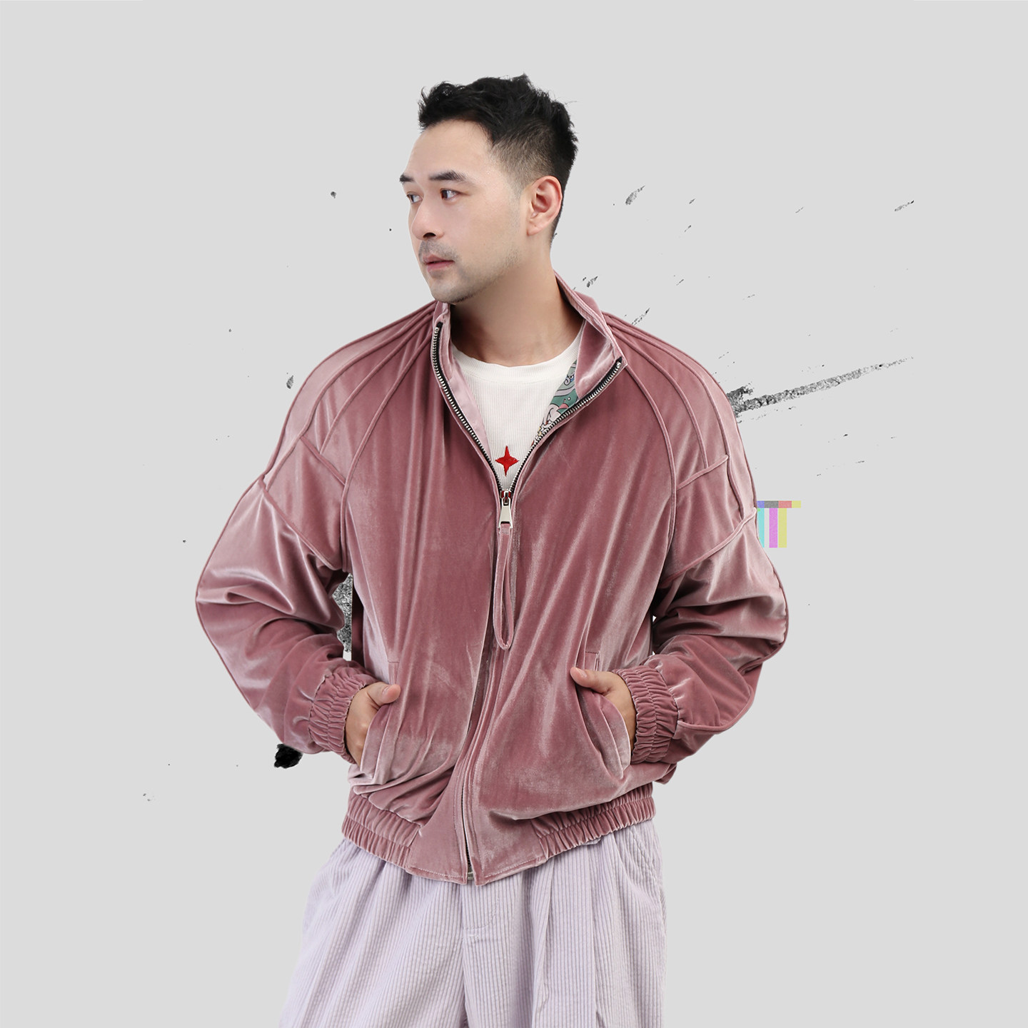 smelt炼感2025秋冬新款亮光丝绒粉色宽松潮流立领棒球服夹克