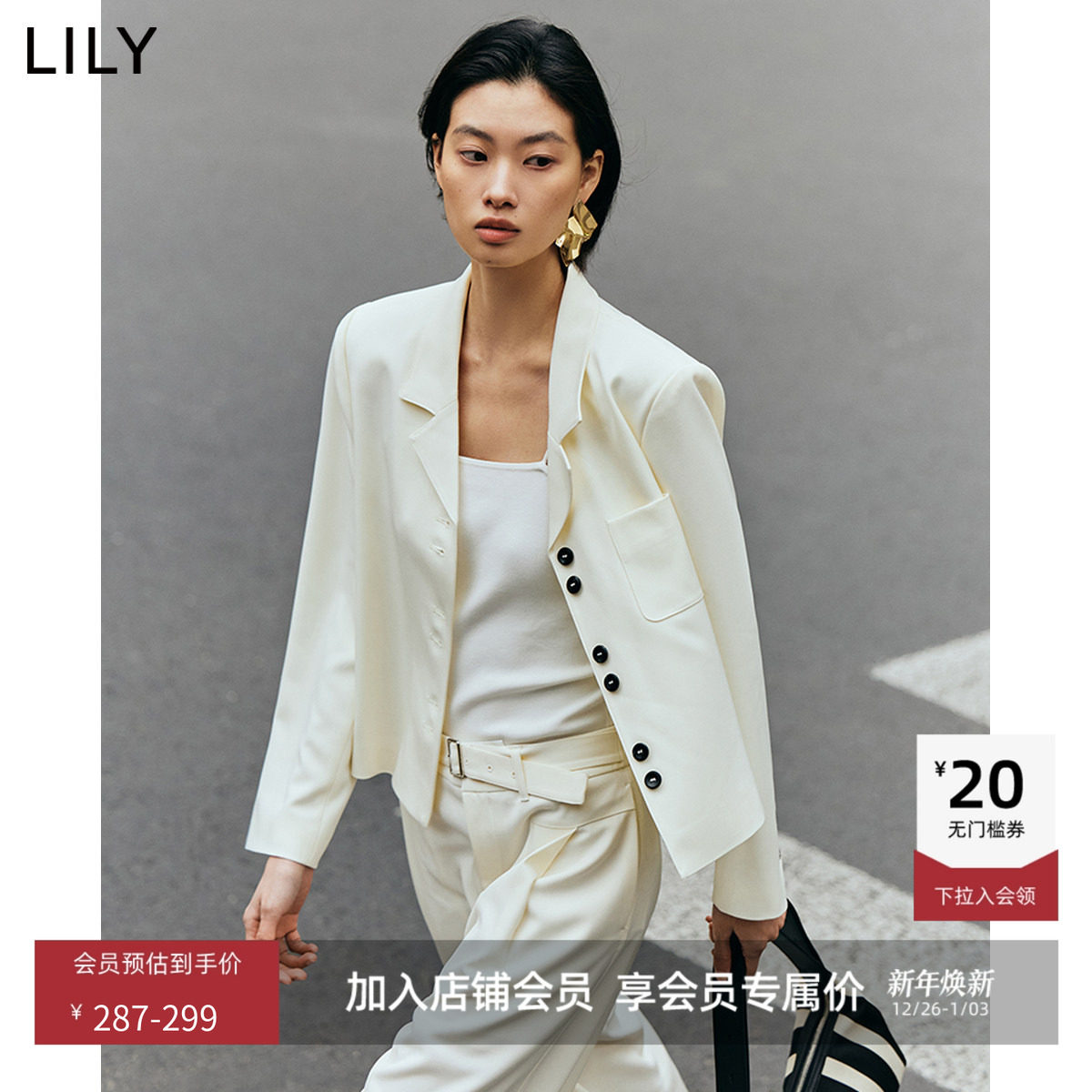 LILY2025新款气质设计感撞色休闲米白色西装外套女短款小个子