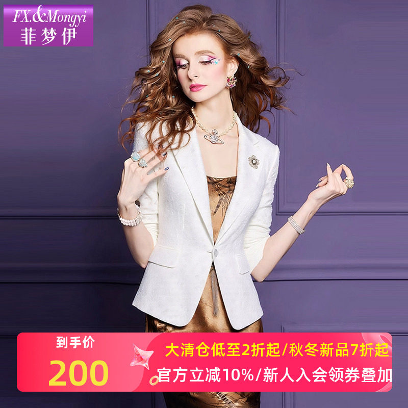 菲梦伊白色西装外套女短款秋季商务正装干练通勤气质简约职业上衣