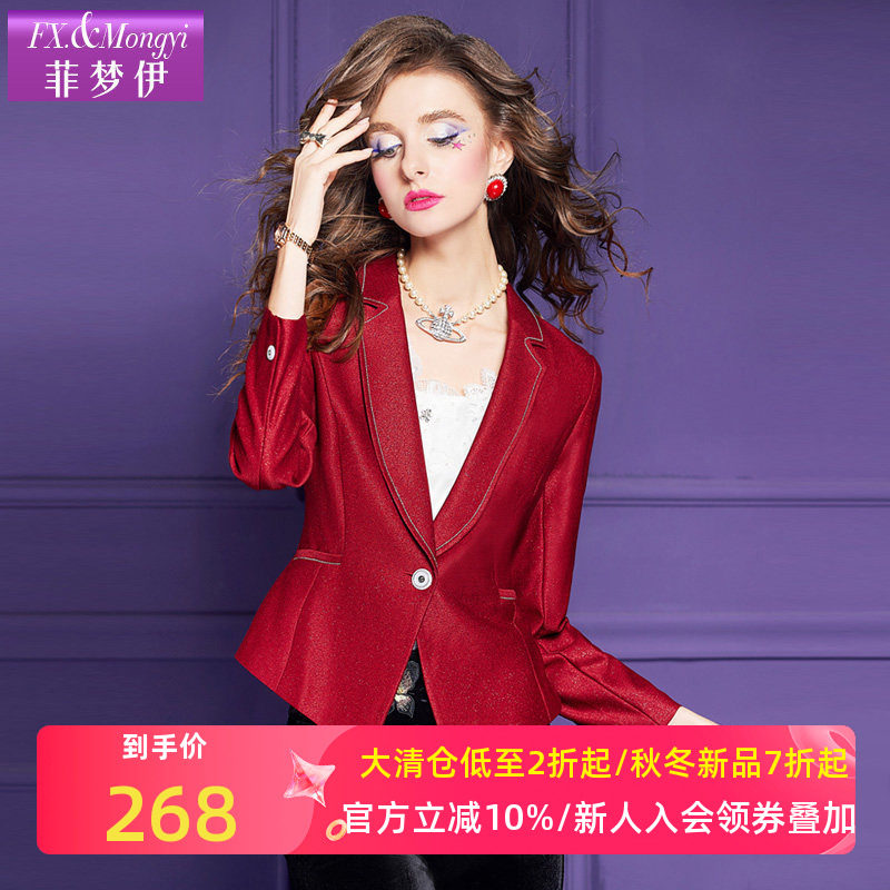 菲梦伊红色西装外套女短款秋季新款高级感时尚简约修身气质OL上衣