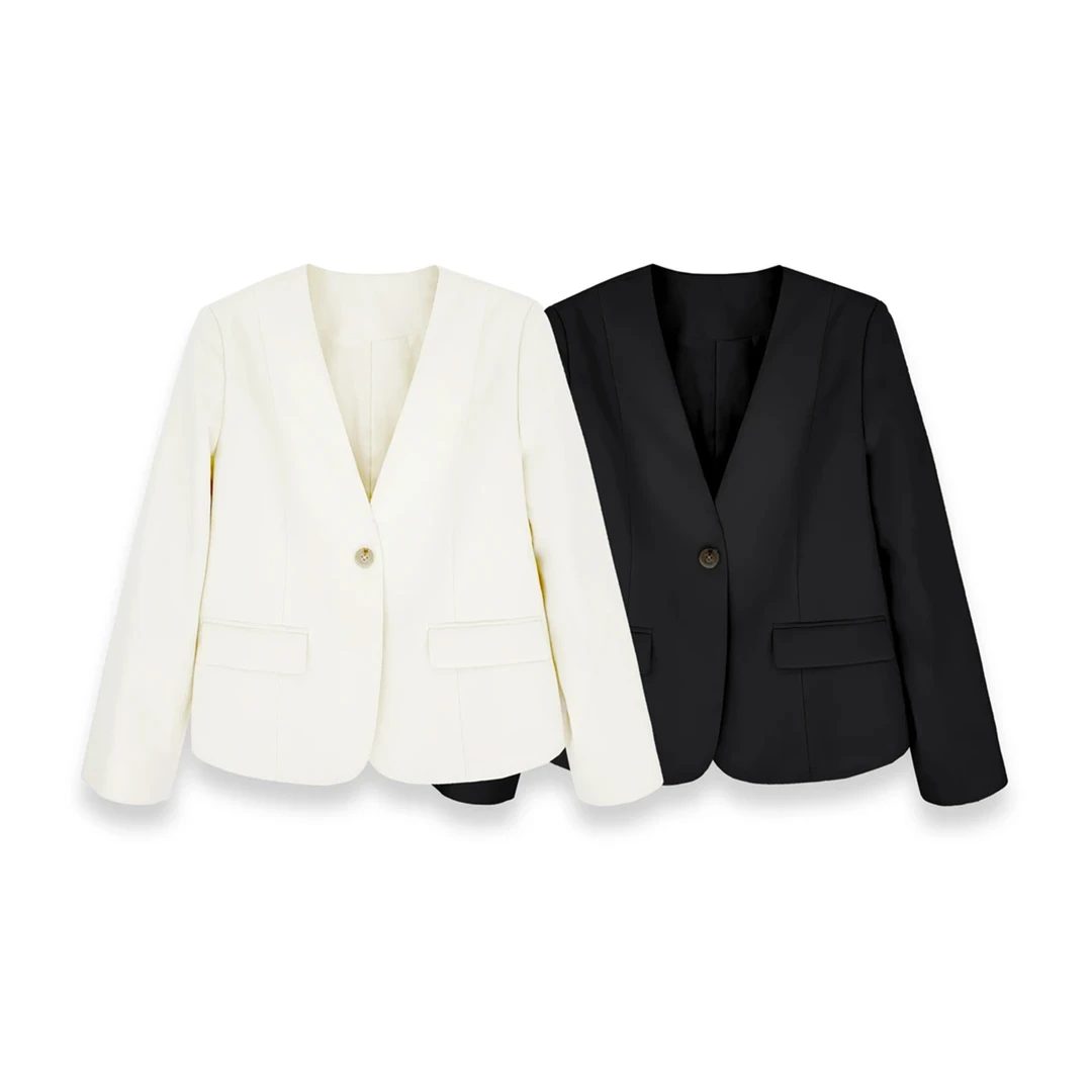2025新款气质时尚百搭短款西服女春季洋气V领西装外套女短款潮