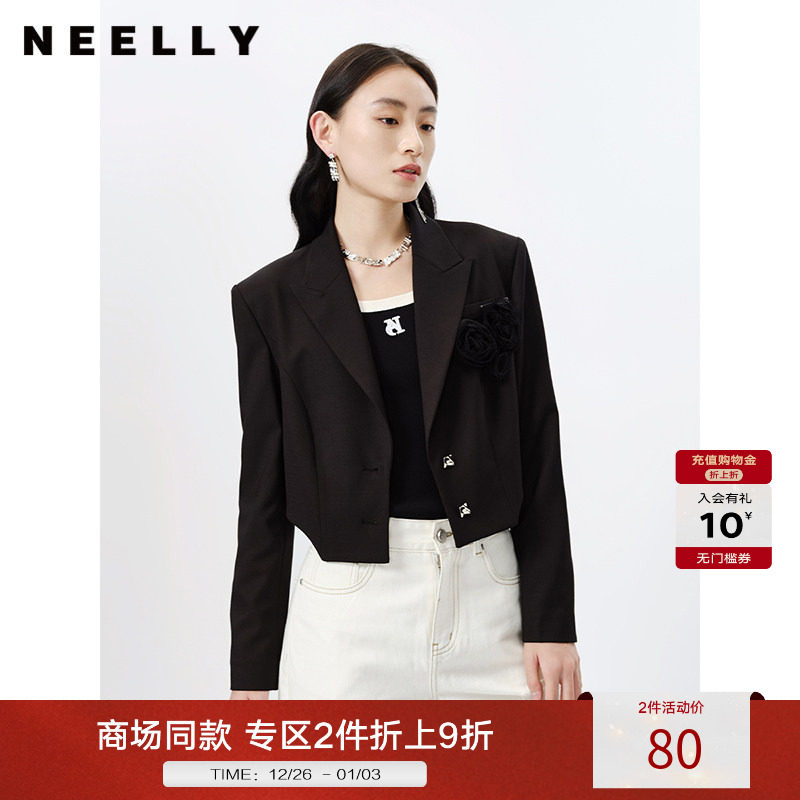 NEELLY纳俪商场同款秋冬新款西装外套女短款休闲两粒扣时尚上衣