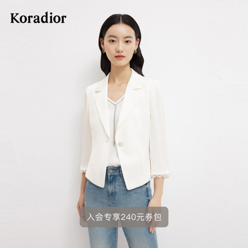 Koradior珂莱蒂尔醋酸修身西装外套女短款秋季小西服职场上衣女