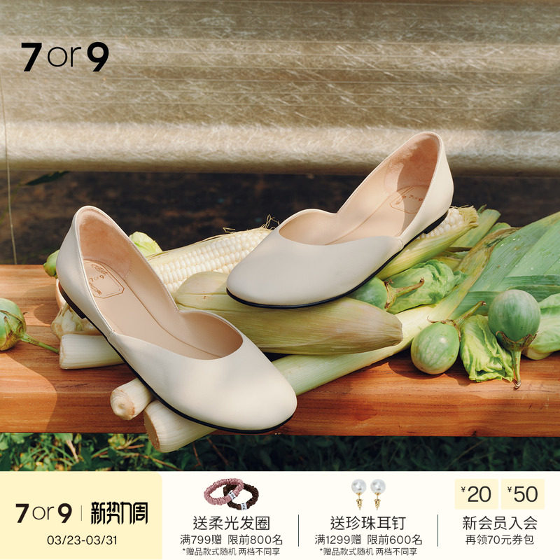 7or9平底鞋女鞋春夏新款圆头一脚蹬小白鞋休闲通勤单鞋不掉跟白柠