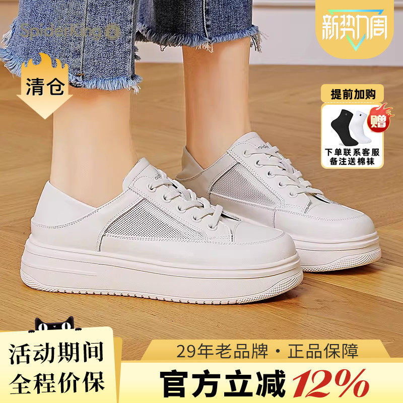 蜘蛛王2025夏季新款小白鞋女百搭真皮休闲平底软皮舒适透气女鞋潮