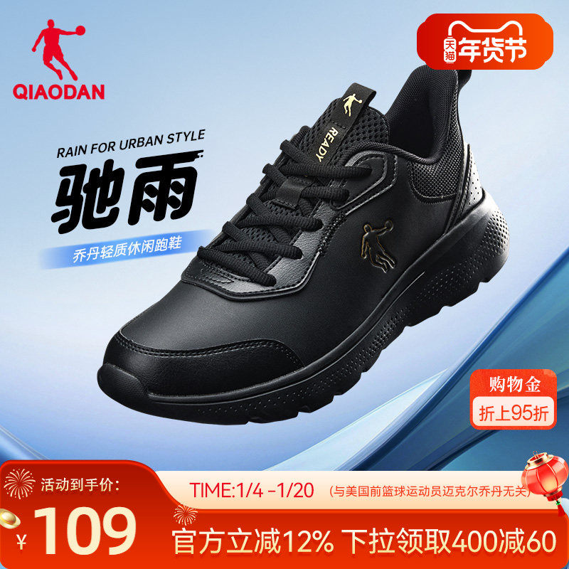 乔丹男鞋跑步鞋黑色正品男士休闲鞋子2025冬季新款防水皮面运动鞋