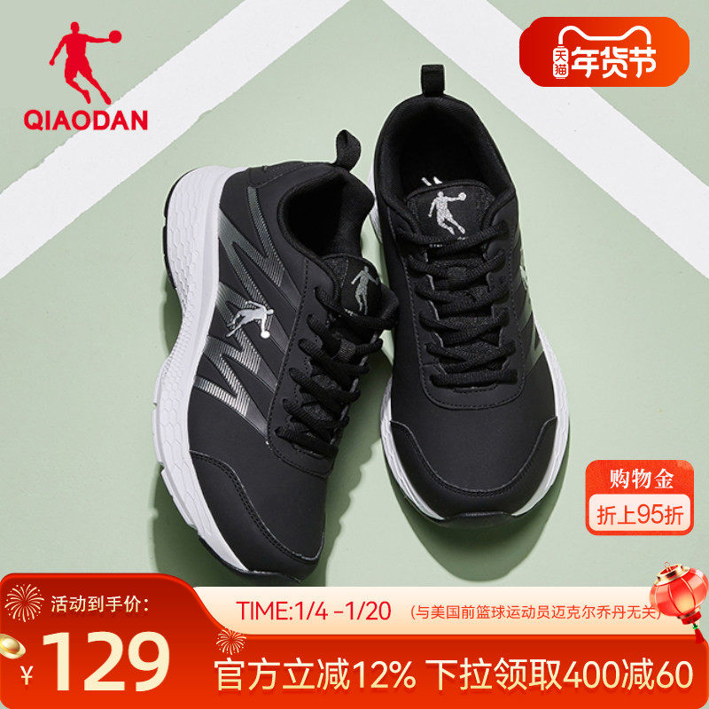 乔丹运动鞋男鞋冬季革面防水情侣跑步鞋轻便软底减震休闲黑色跑鞋