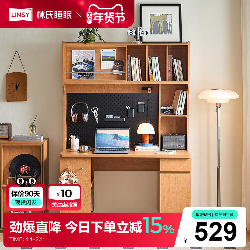 林氏睡眠书柜书桌书架一体电脑桌洞洞板学习桌卧室成人家用写字台