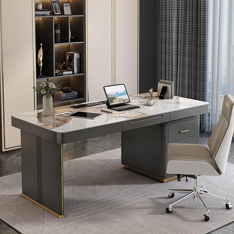 意式岩板书桌轻奢现代书房写字台简约风格设计师办公桌台式电脑桌