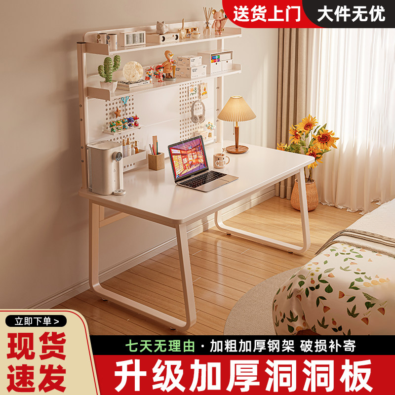 书桌子卧室女生家用网红电脑桌梳妆台一体奶油风学习桌工作写字台