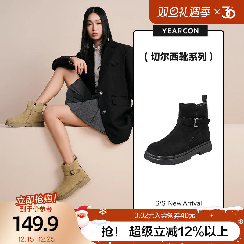 「鞋登」切尔西靴女款加绒2025秋季新款磨砂皮烟筒靴真皮袋鼠短靴