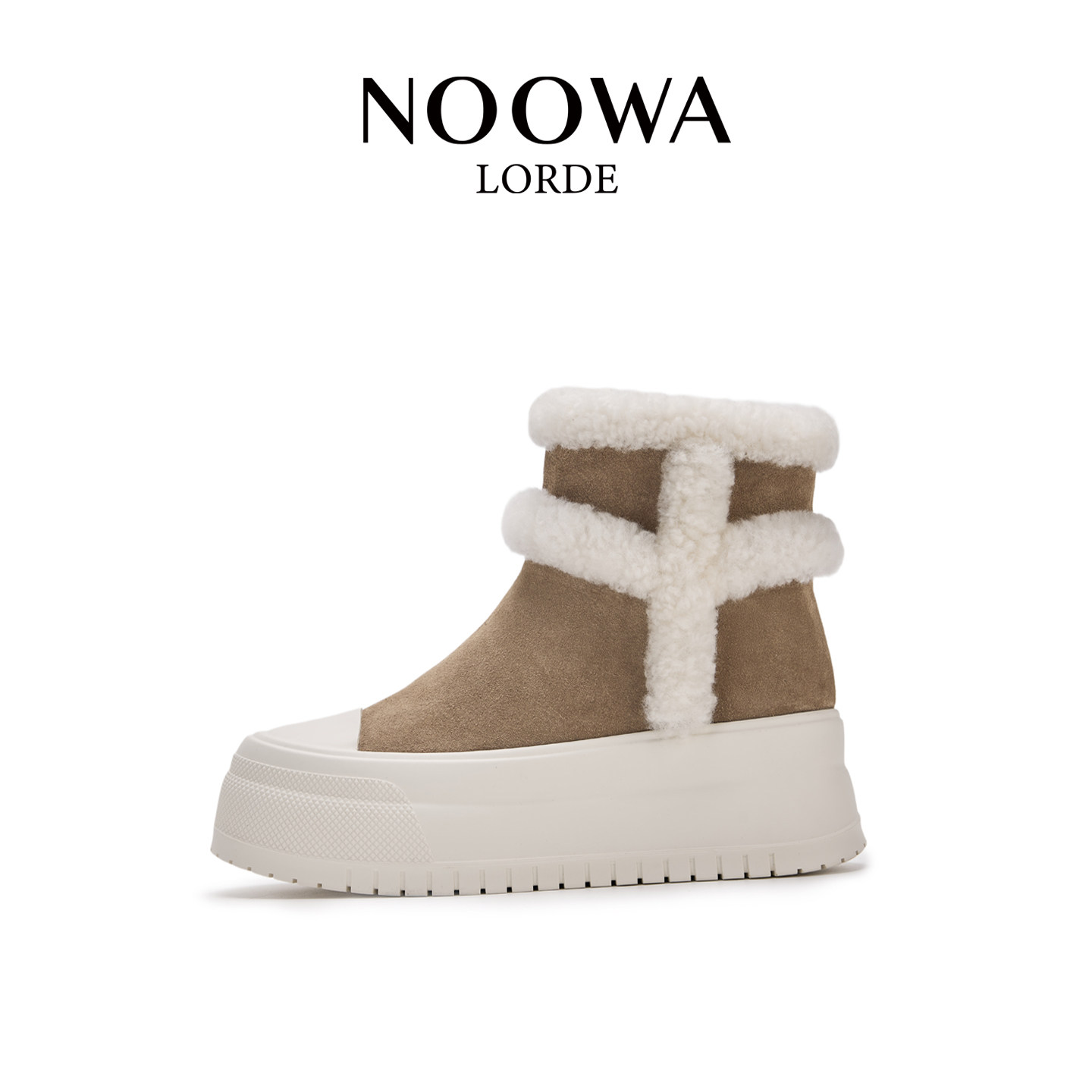 NOOWA商场同款加绒短靴2025冬季真皮厚底英伦磨砂保暖毛毛女士靴