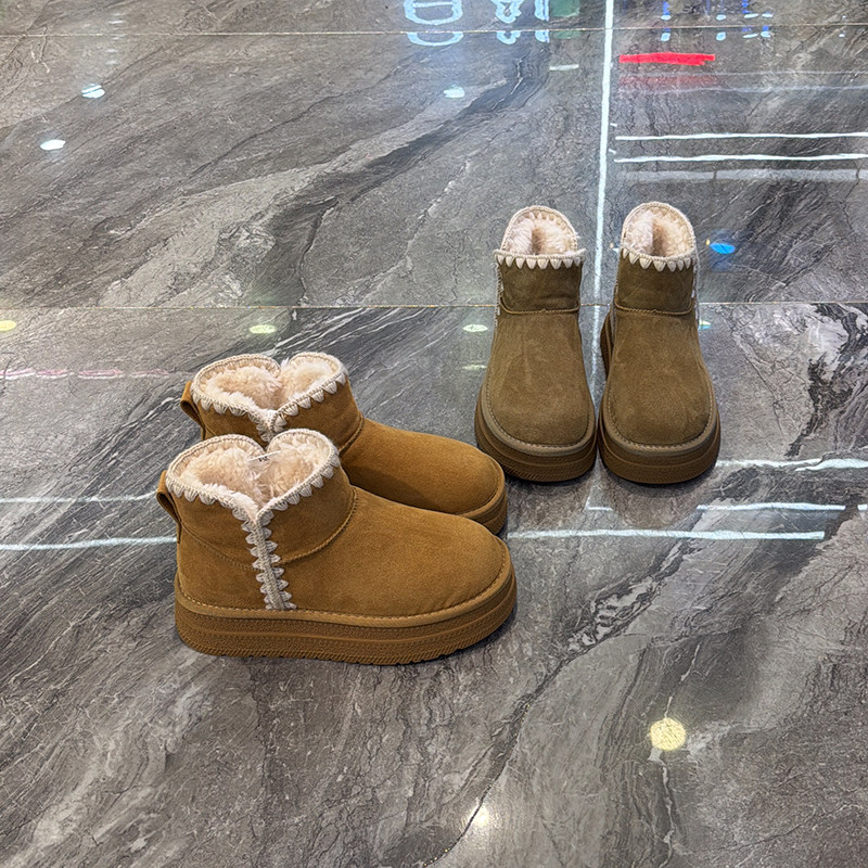 2024处理秋冬断码真皮女鞋雪地靴松糕底厚底短靴保暖圆头磨砂女靴