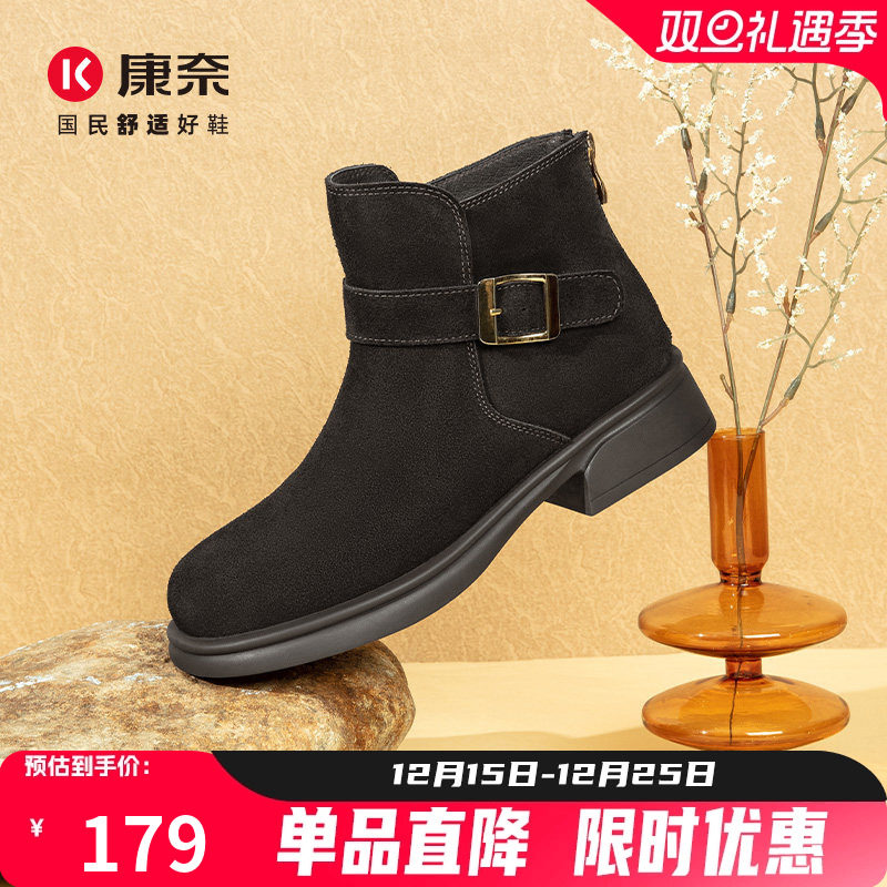 2025秋冬新款真皮短靴女磨砂皮切尔西靴中跟平底短筒裸靴保暖女鞋