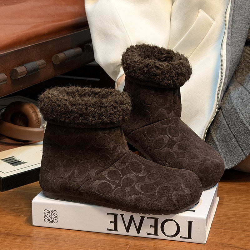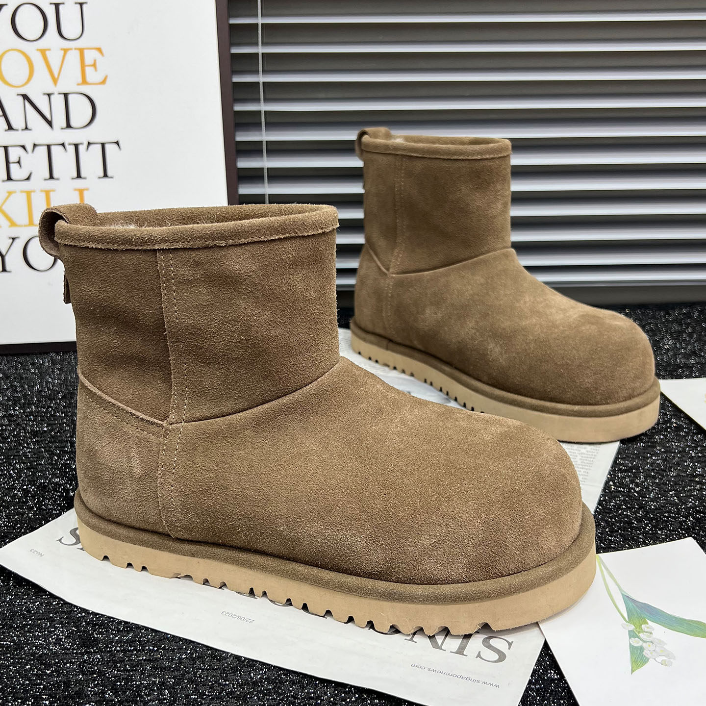 2025冬真皮时尚雪地靴女包跟小土豆勃肯短靴磨砂皮棉鞋青年靴子潮