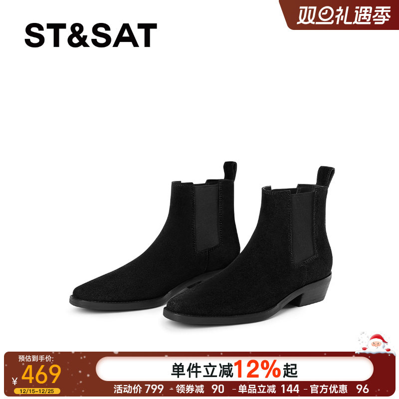 星期六美拉德短靴女2025年秋冬圆头粗跟磨砂高级感短靴真皮及裸靴