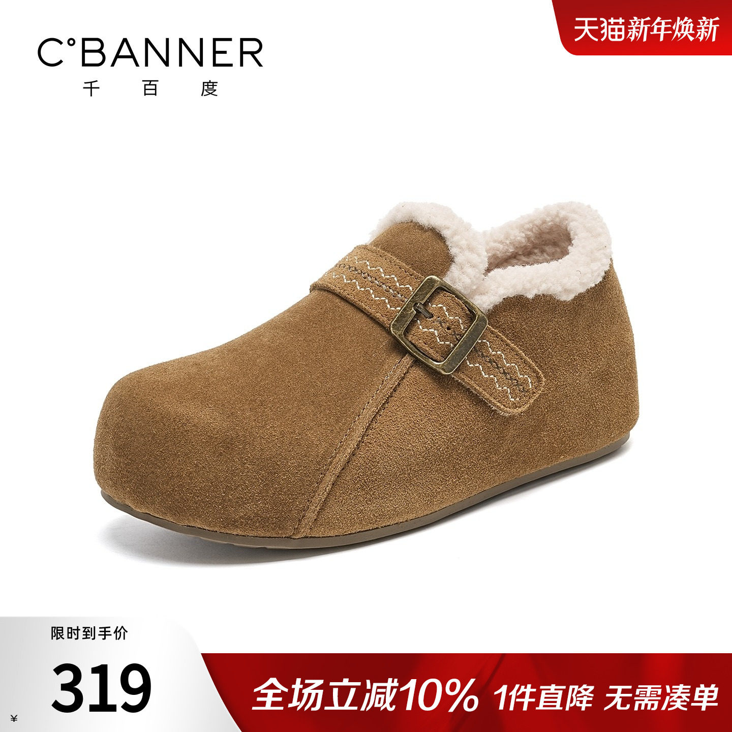 千百度勃肯鞋女2025冬季新款厚底加绒毛毛鞋一脚蹬豆豆鞋保暖棉鞋