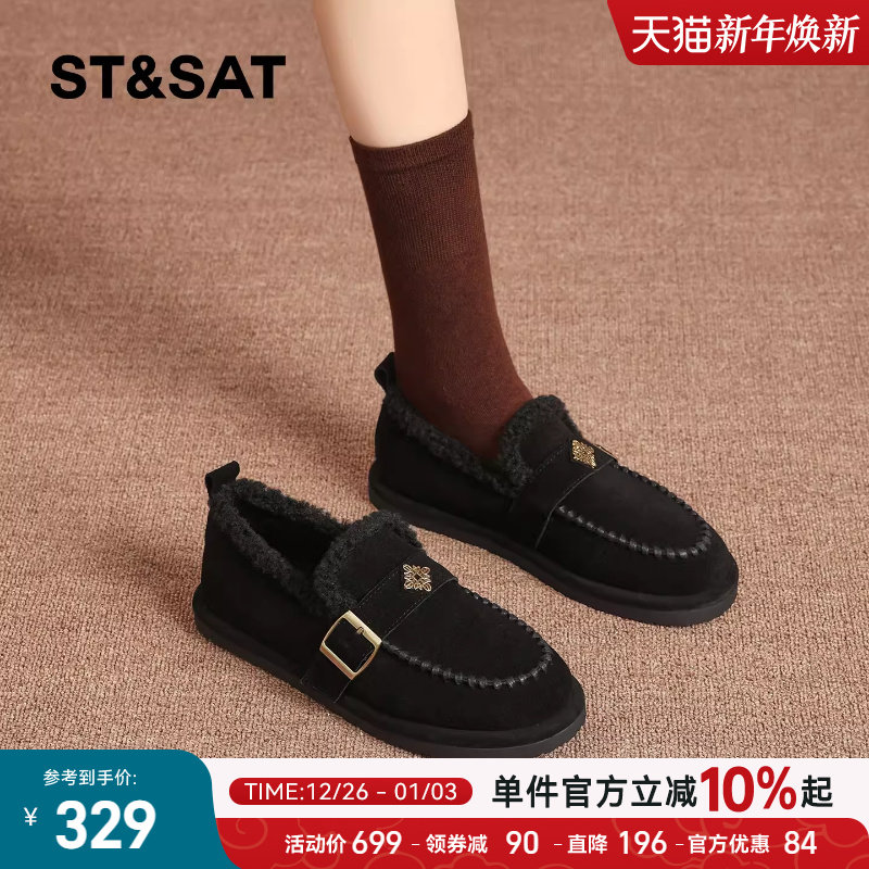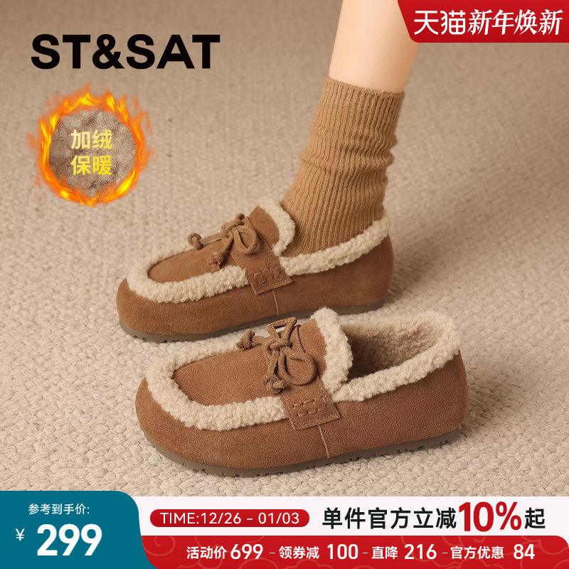 星期六毛毛鞋女款冬季加绒保暖2025新款乐福女鞋平底棉鞋豆豆鞋子
