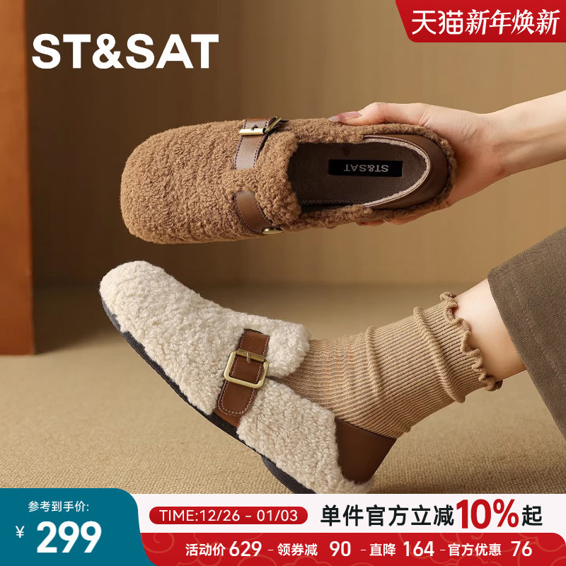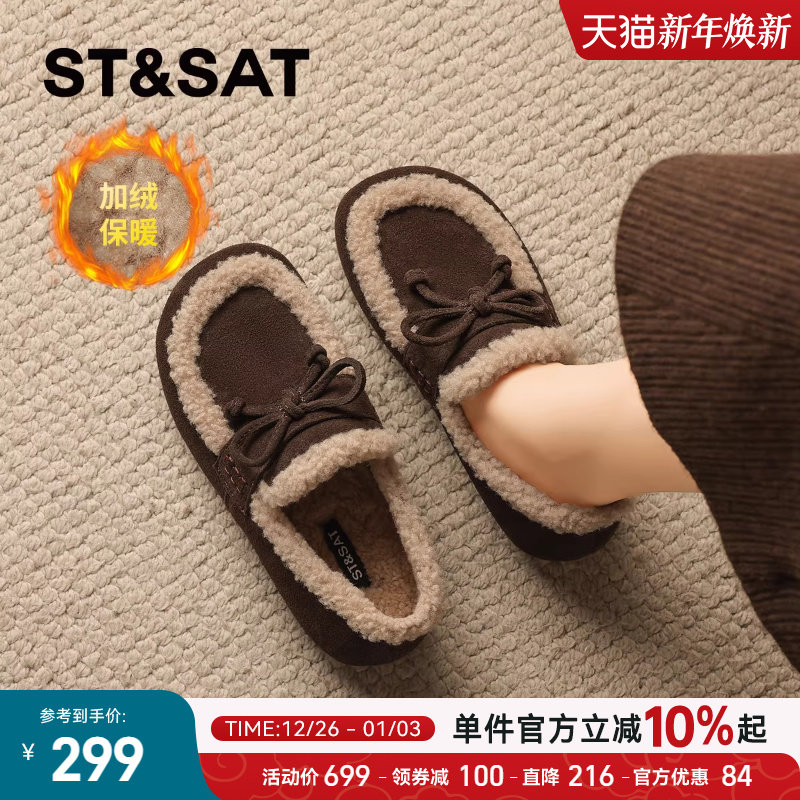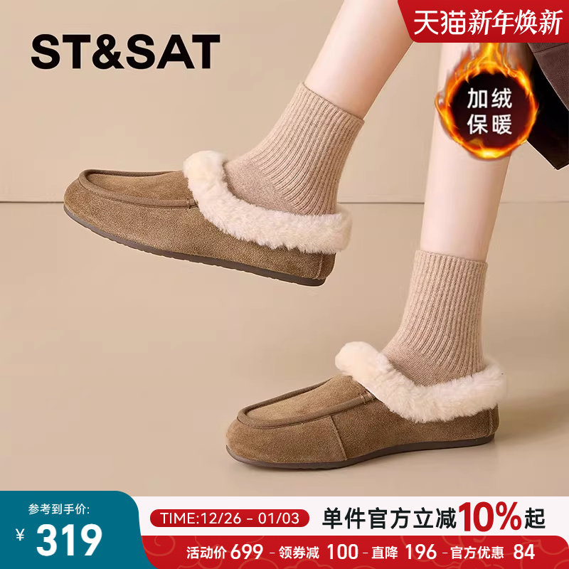 星期六复古毛毛鞋女2025新款冬季女鞋加绒加厚保暖豆豆鞋勃肯棉鞋