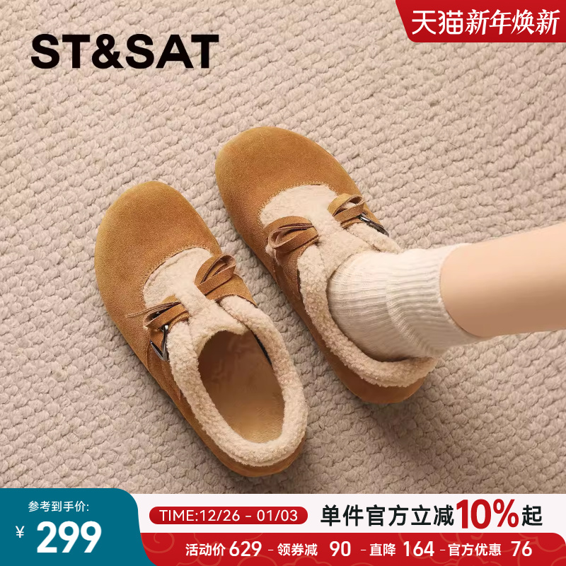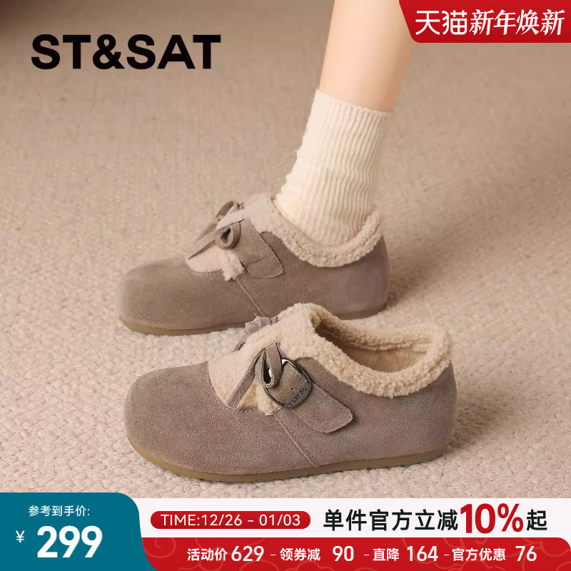 星期六真皮加绒保暖勃肯棉鞋女鞋2025冬季新款厚底豆豆鞋毛毛鞋子