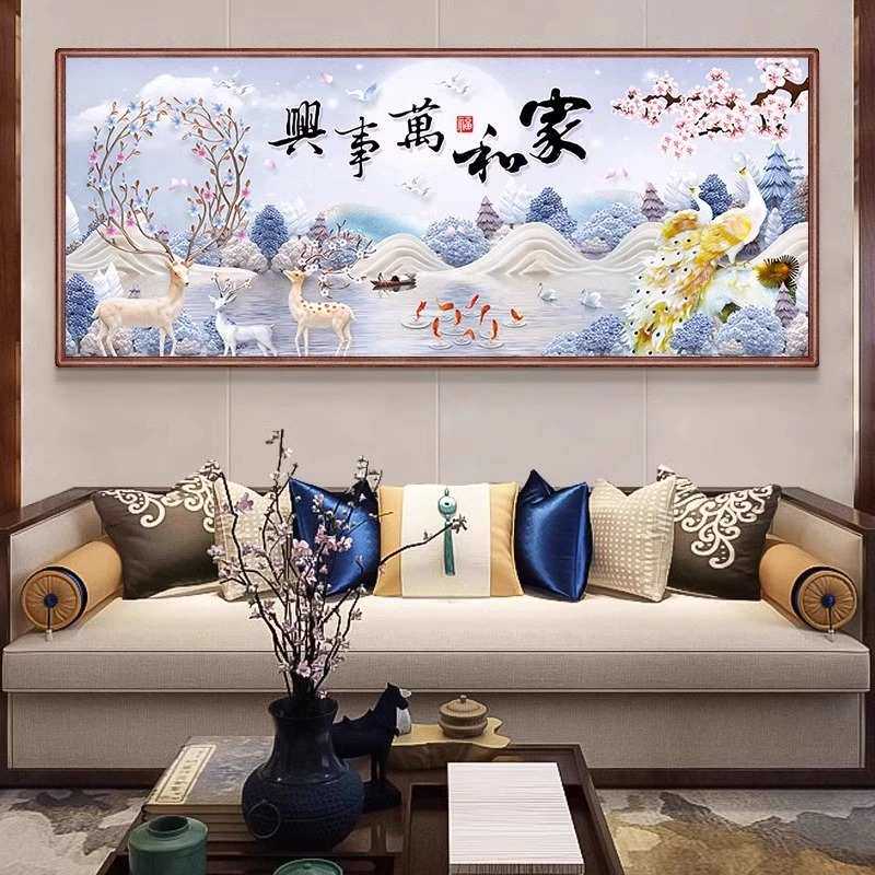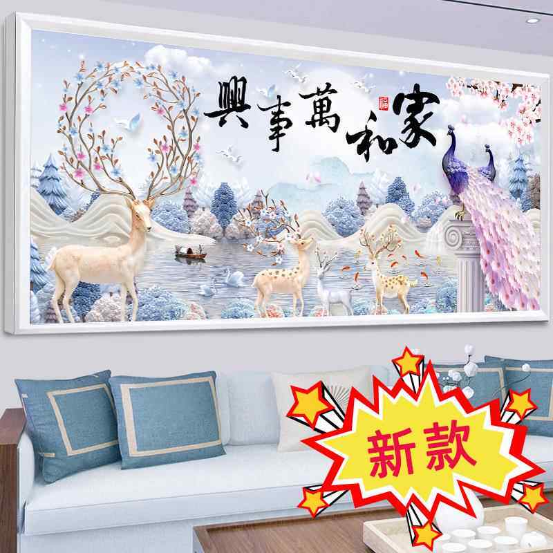 家和万事兴5D钻石画满钻2026新款客厅大气风景粘贴十字绣麋鹿孔雀