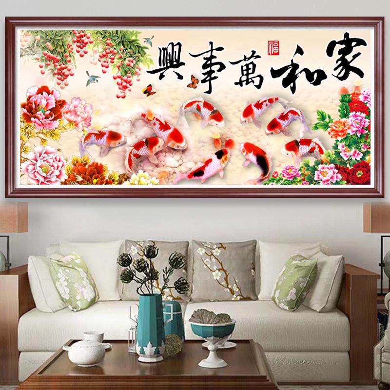 5d钻石画满钻家和万事兴点贴砖石十字绣九鱼图2026新款客厅中国风