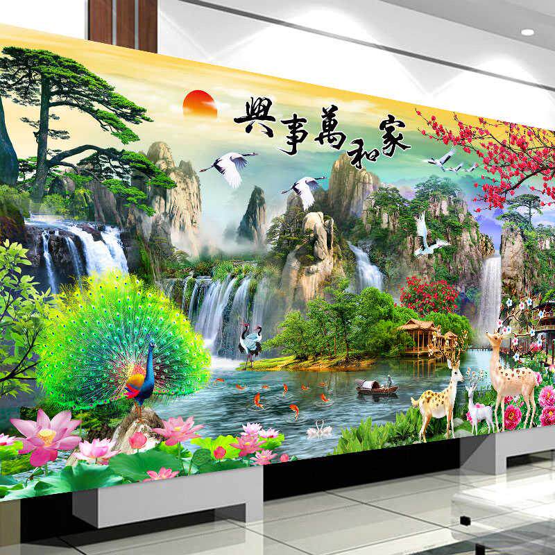 5d钻石画满钻2024新款客厅家和万事兴点贴画风景山水画十字绣2025