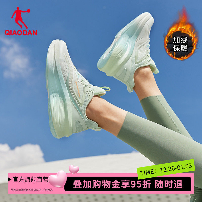 乔丹软底减震跑步鞋女士轻便超轻专业加绒运动鞋青少年初中生棉鞋