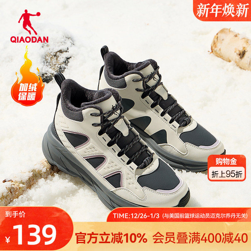 乔丹女鞋官方旗舰店跑步鞋女款棉鞋皮面加绒增高厚底运动鞋二棉鞋