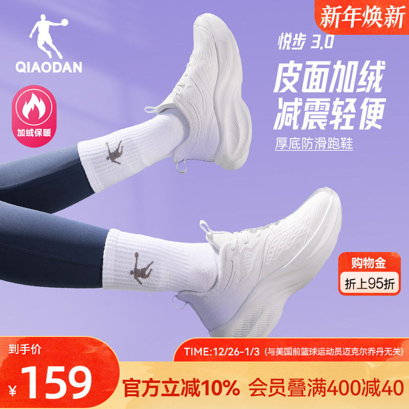 乔丹跑步鞋女2025冬季加绒革面运动鞋轻便跑鞋减震回弹软底跳绳鞋