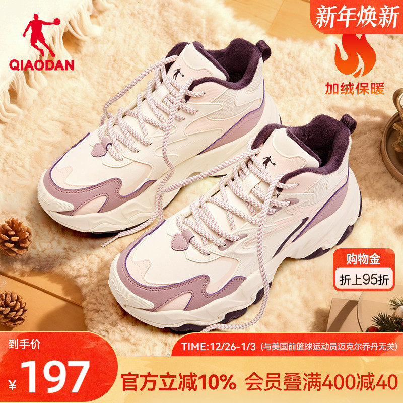 乔丹悦步3女款运动鞋棉鞋冬季加绒保暖二棉鞋学生跑步鞋厚底增高