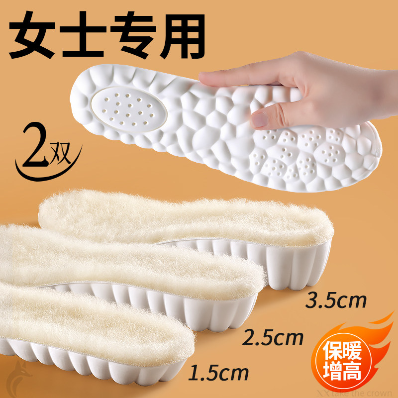 羊毛保暖增高鞋垫女士新款冬加绒加厚超软舒适不累脚马丁靴内增高