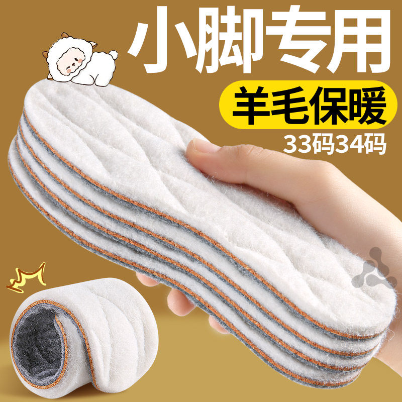 34码小码鞋垫冬季保暖加绒女款吸汗防臭真羊毛毛毡防寒不冻脚33码