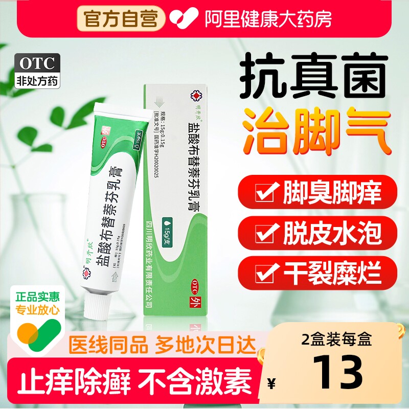 明开欣盐酸布替萘芬乳膏15g医用去脚气止痒正品水泡抗真菌药膏