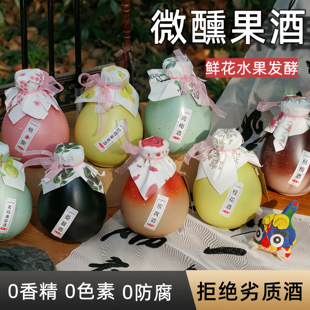 0添加剂非遗果酒桃花酿女士低度甜酒微醺女生桂花桑葚杨梅青梅酒