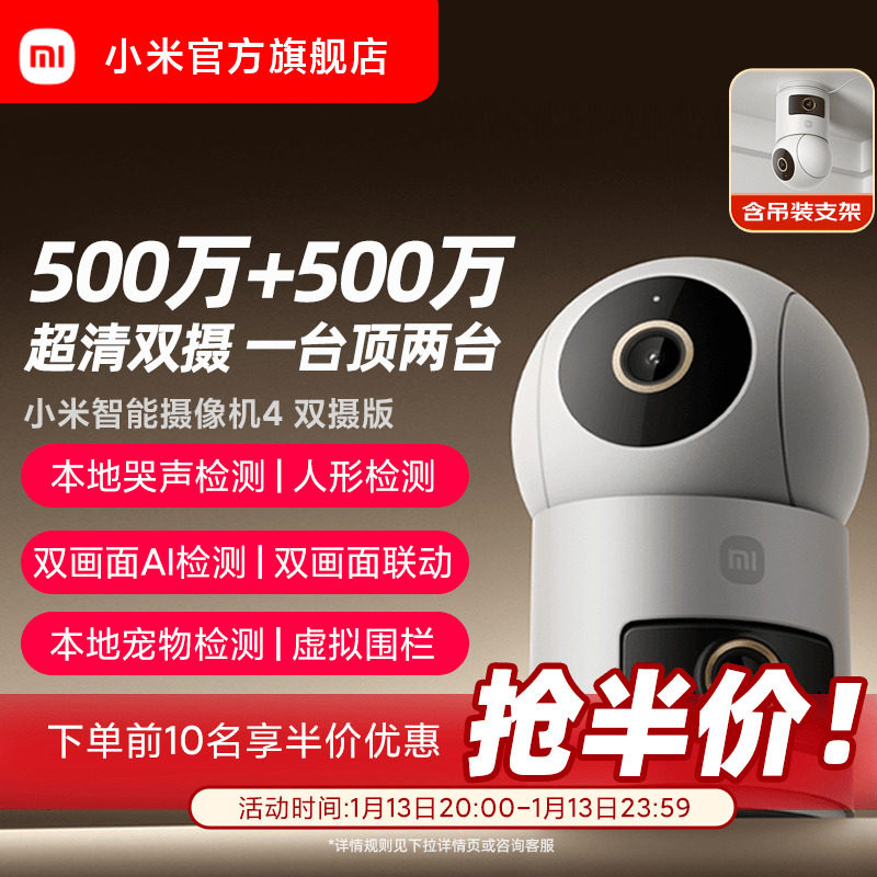 小米智能摄像机4双摄360全景室内家用监控远程手机无线网络摄像头