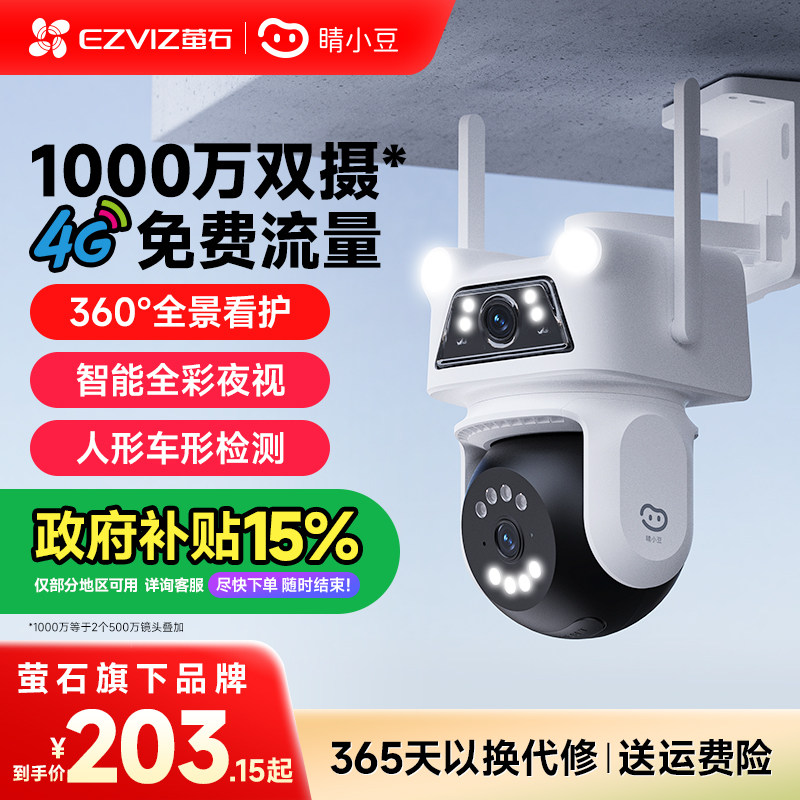 萤石睛小豆无线监控摄像头4g免流量无需网络家用室外360度无死角