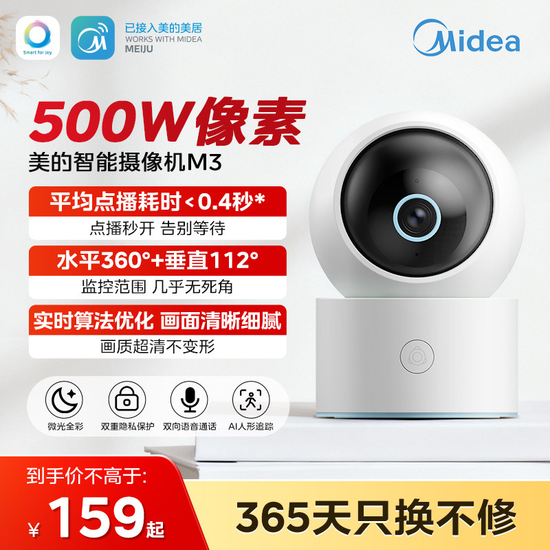 美的智能摄像头云台版监控家用手机远程无线网络摄像机360全景M3