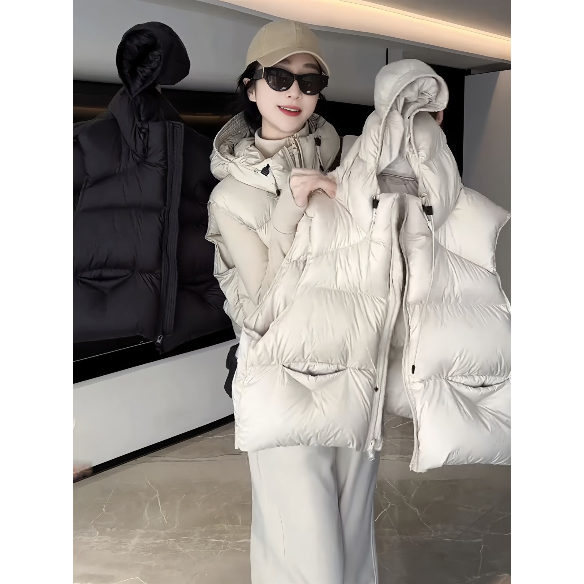 羽绒马甲女款2025新款春秋外穿时髦洋气韩版宽松连帽羽绒背心马夹