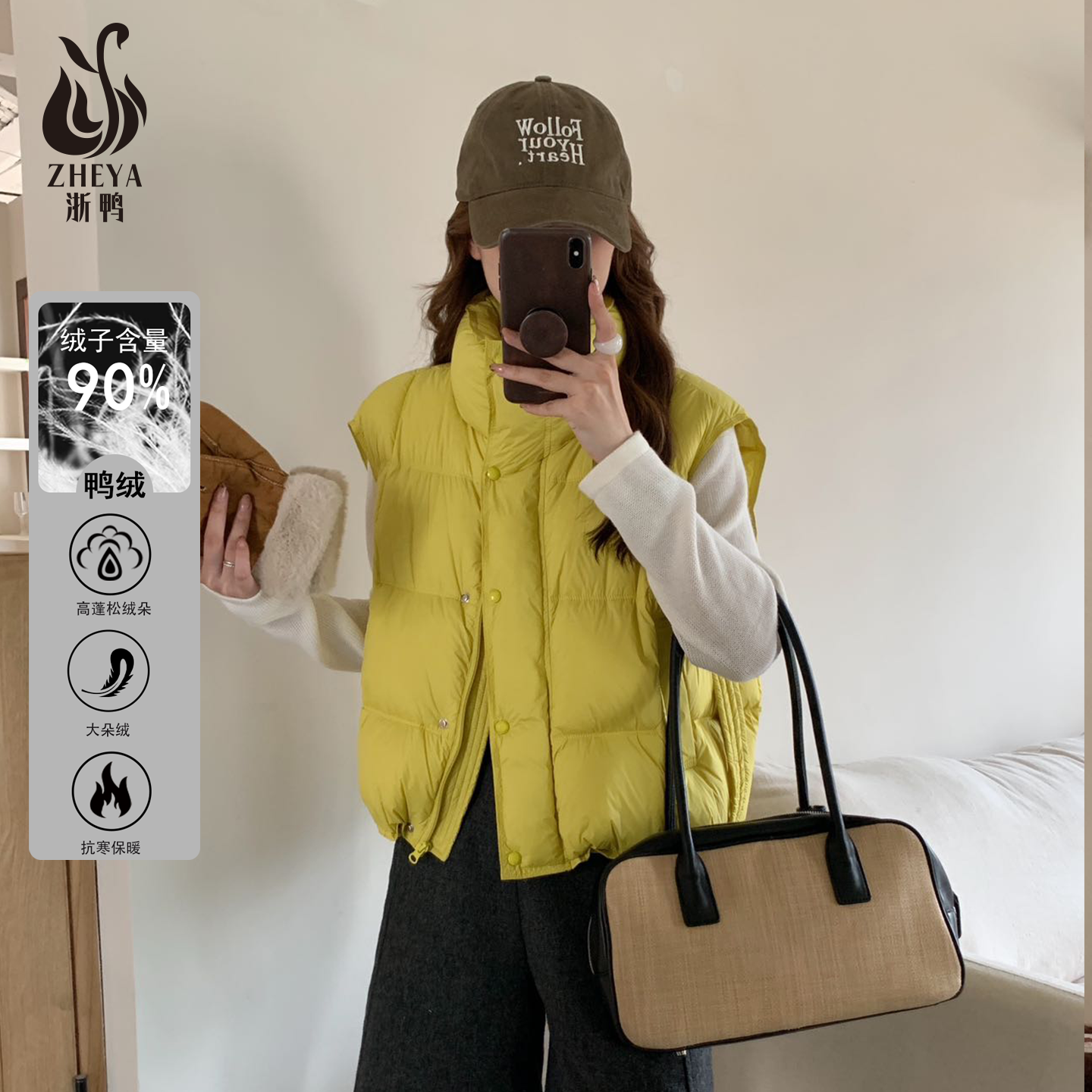羽绒马甲女款2025新款外穿短款立领90白鸭绒小个子超好看秋冬外套