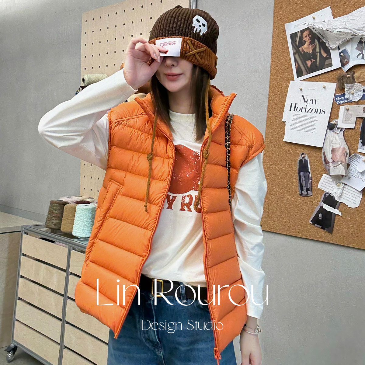 林肉肉【纯色立领羽绒马甲】橙色简约无袖立领羽轻薄羽绒马甲女款