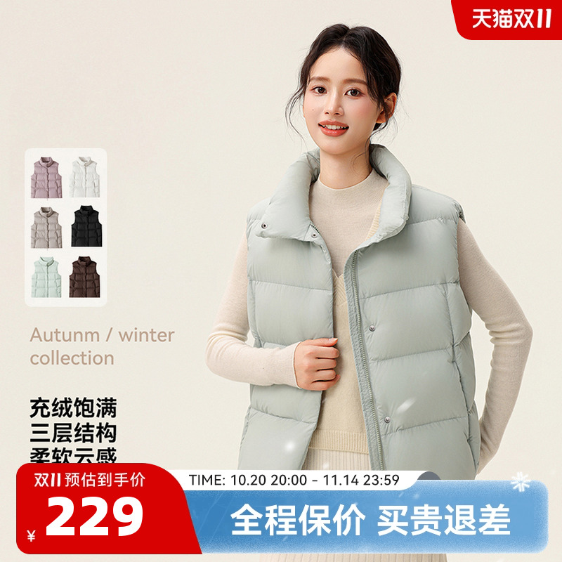 Basic House/百家好立领羽绒马甲女款冬季新款无袖白鸭绒保暖外套