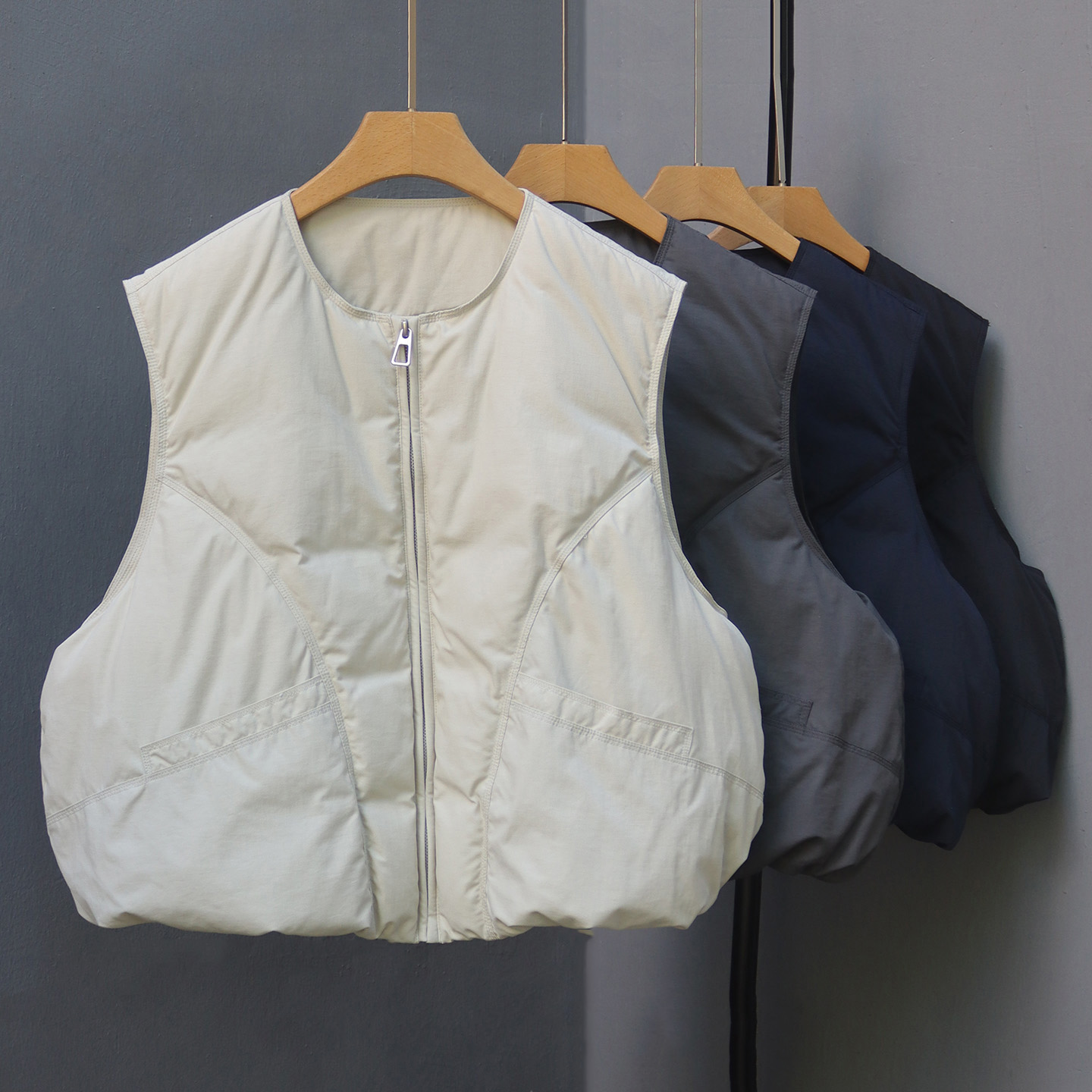 那木宽松韩国立领白鸭绒羽绒马甲女款2025秋冬宽松显瘦排骨外套
